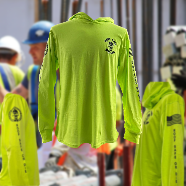 Stand out or fade out. This long-sleeve lightweight hoodie hits hard in high-vis lime green, built from 100% cotton for breathable comfort that lasts through the grind. The hood brings added edge and utility—layer it, live in it, rep it. Whether you're roping up or kicking back, this tee keeps the vibe loud and the message clear: safety never looked this bold.