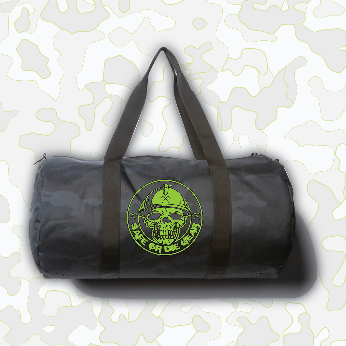 The SoD Duffel is perfect for getting your Safe or Die gear (and other stuff) to and from the job site, the office, home and the gym. Made of durable polyester material with Nylon handles and removable shoulder strap. With a 6" Safe or Die Gear logo printed in safety green, for when you want to be seen not being seen.