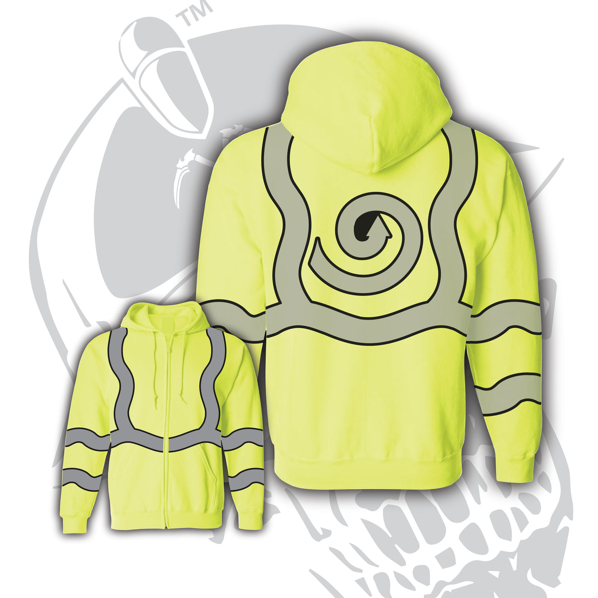 That bold waves and spiral? It’s not just design—it’s defiance, and it's loco. A reminder that safety doesn’t mean boring. From the reinforced seams to the street-ready silhouette, this hoodie is for the tradesperson who shows up sharp, works hard, and never blends in.