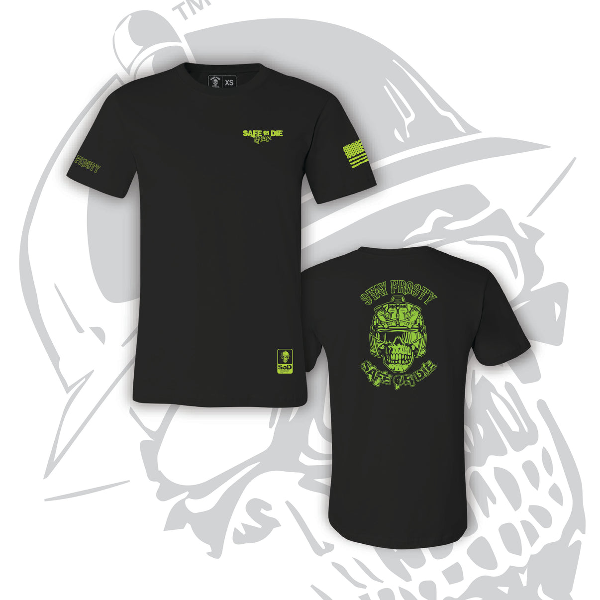 The SoD Stay Frosty Tee delivers exceptional softness through its premium fabric blend. This tactical iteration showcases a reimagined Safe or Die emblem alongside the American flag, maintaining our signature aesthetic while introducing (very subtle) tactical-inspired elements. The superior comfort and distinctive design elements make this garment a standout addition to any apparel collection. Available in black with lime green print,...